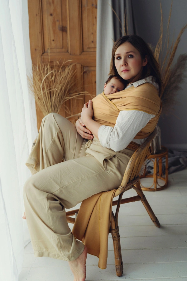 Kangas on pehme ja ette valmis seotav lina toetab last õrnalt kallistades aga samas kindlalt toetades (kangas venib ainult laiusesse).